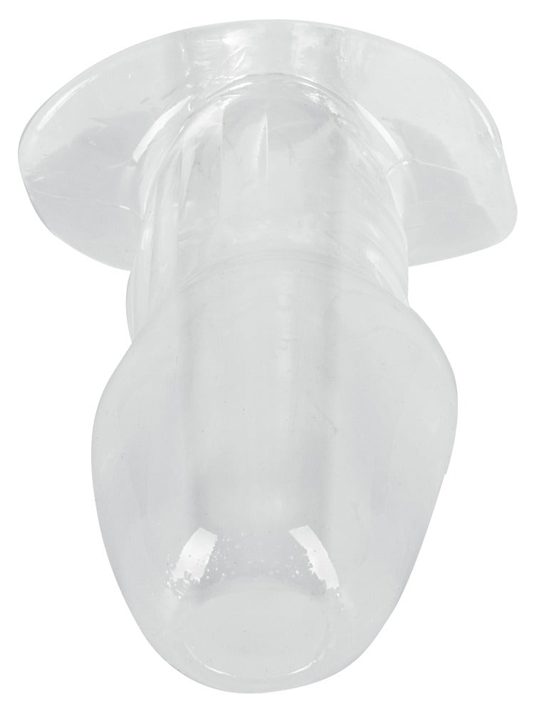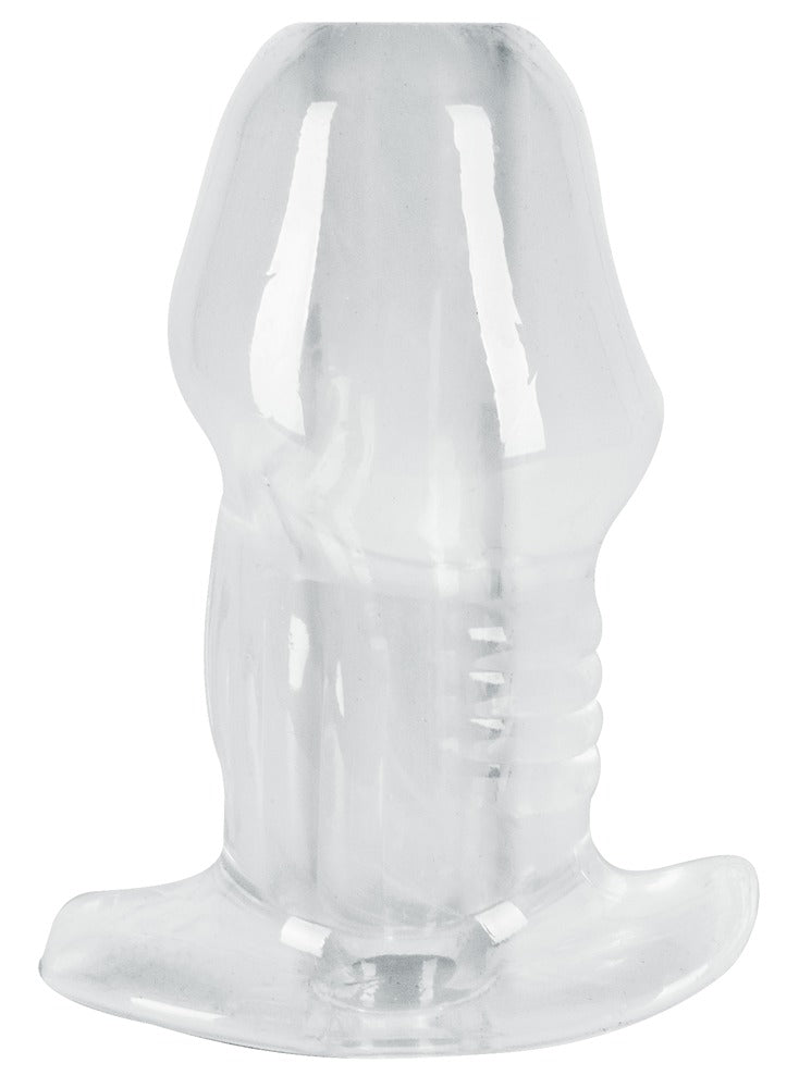 Gennemsigtig, hul Butt Plug with Tunnel fra ANOS til behagelig anal udstrækning med frit udsyn. Det bløde materiale af høj kvalitet glider let og former sig perfekt efter endetarmens vægge. Sofistikerede gradueringer intensiverer den anale fornøjelse og sikrer et sikkert greb. Den brede stopper garanterer en skridsikker pasform i anus. Tunnelpluggen er åben hele vejen igennem og giver ikke kun en spændende udsigt og indsigt. Den er også ideel til lavementer og indføringslege med fingre eller legetøj.